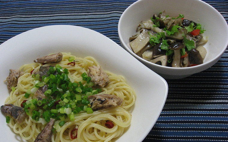 簡単!レシピ「さば缶パスタときのこのマリネ」