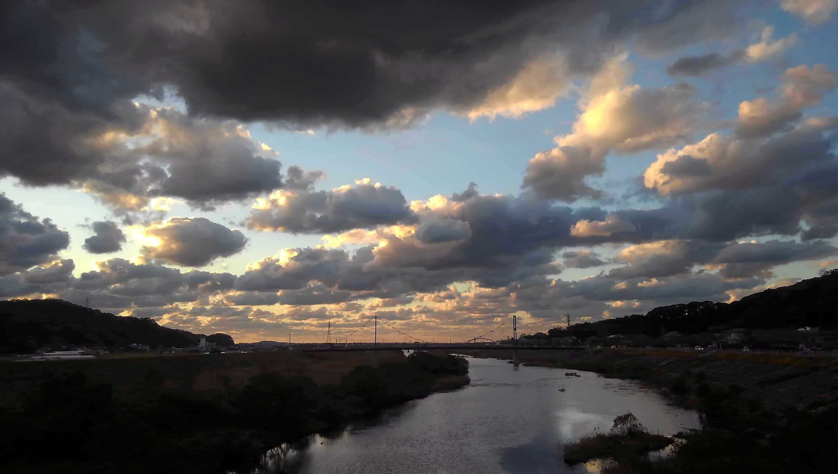 夕焼け空が川面につくる黄金色の帰り道。
