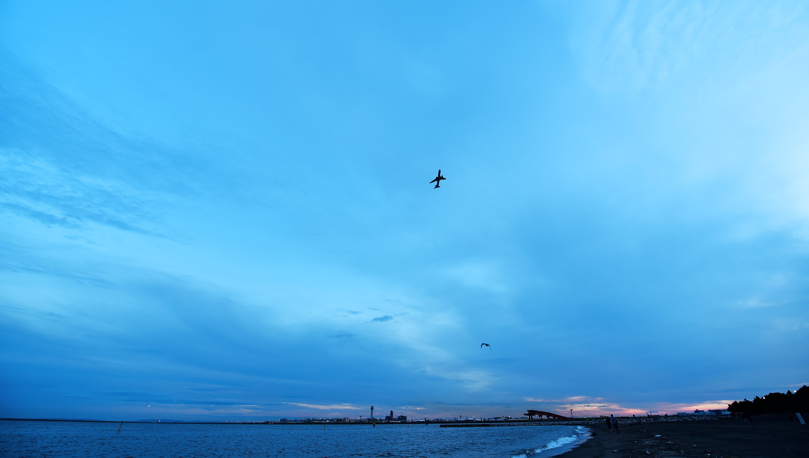 激しく往来する飛行機たち、鳥たち。