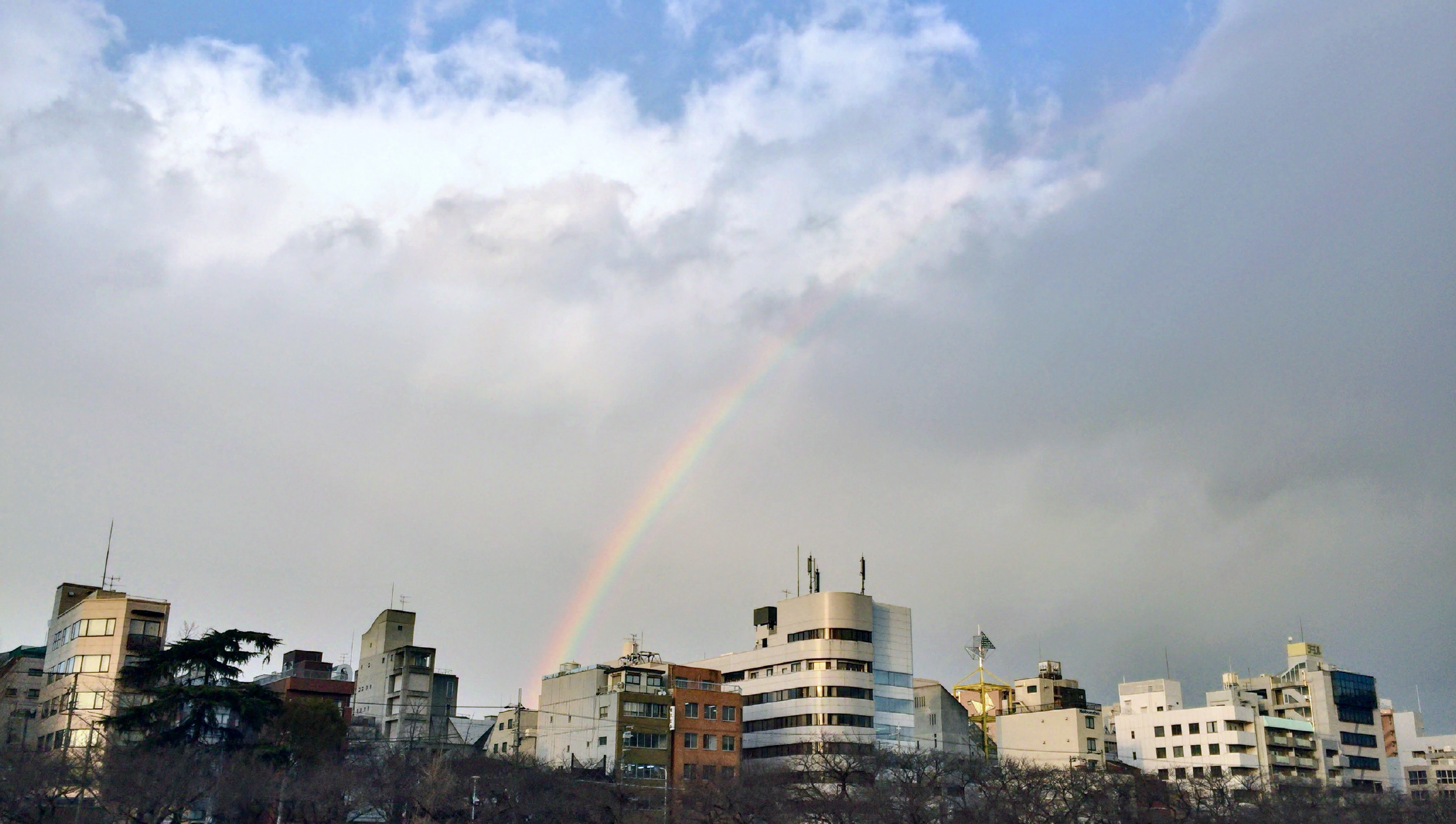 雨上がりの空に一筋の虹の花火。