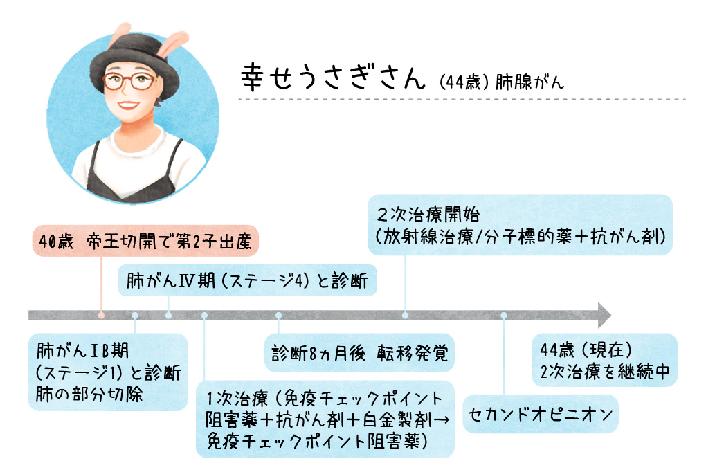 肺の部分切除をしたときの胸水の細胞診で、肺がんはⅠB期(ステージ1)ではなく、Ⅳ期(ステージ4)ということがわかりました。執刀した先生は何かの間違いかもしれないとはおっしゃっていたのですが、結局、主治医が外科医から内科医に替わり、入院して2種類の免疫チェックポイント阻害薬と抗がん剤(化学療法)、白金(プラチナ)製剤による併用療法を2回おこないました。退院後は、2種類の免疫チェックポイント阻害薬または単剤の点滴治療を外来通院でおこないました。