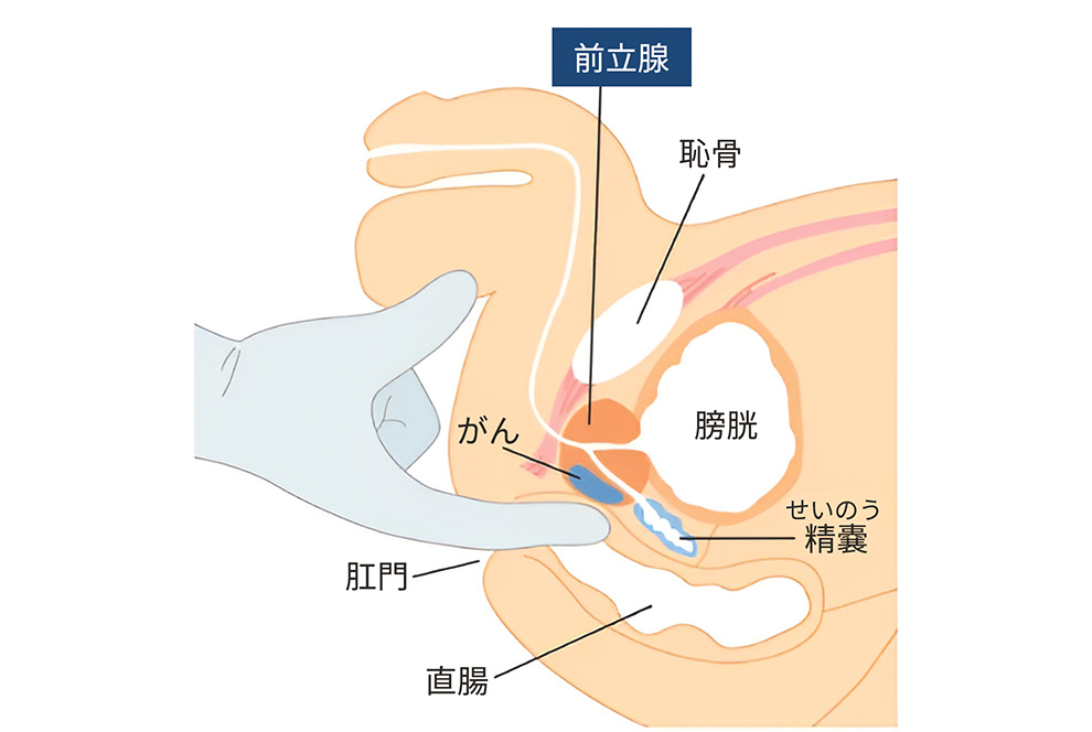 PSA基準値以下の進行がん(PSA陰性がん)を見逃さないためには、直腸内触診を。